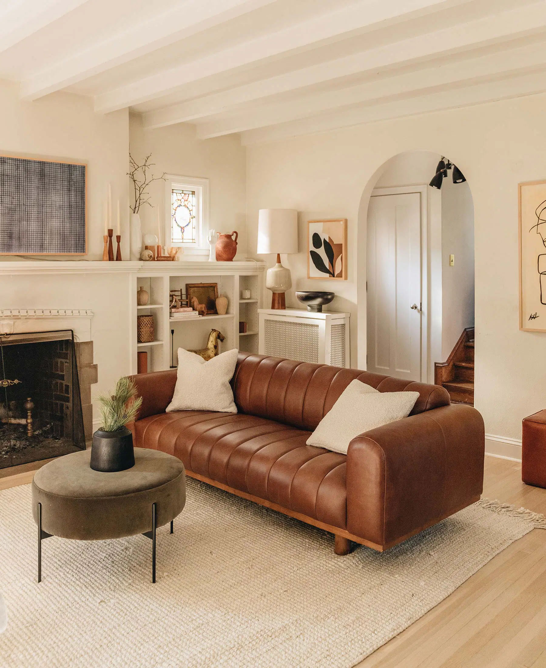 Creating a soft look using curved shapes runs with the theme of 2023 to bring back a home-feeling to our homes. The sun shining through large windows bounces off delicately from curved furniture like this sectional from ROVE Concepts, creating a perfect atmosphere of rest and style in a home. Expect to see a come back in arched walls, this arched mirror from Bouclair and feature walls with arched designs. A perfect balance of fresh and contemporary.
